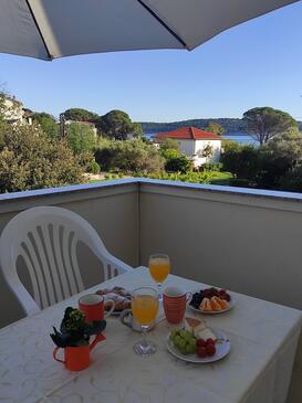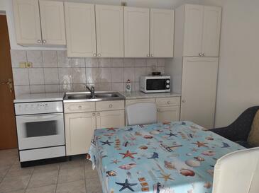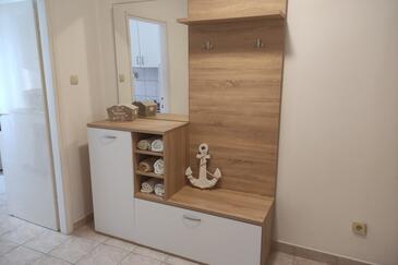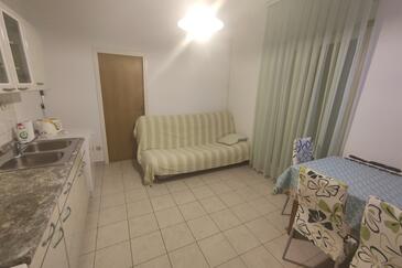 Ferienwohnung bietet Platz für 4 Gäste. Die Betten sind in Schlafzimmern, die es 2 gibt, innerhalb einer Gesamtfläche von 46m2, angeordnet. Die Gäste haben eine eigene Terrasse zur Verfügung, auf der sie in warmen Sommernächten genießen können. Das Apartment bietet Meerblick. Es ist erlaubt, Speisen auf dem Gemeinschafts-Grill vorzubereiten. In der Unterkunftseinheit besteht die Möglichkeit des Mitbringens von Haustieren gegen Aufpreis.