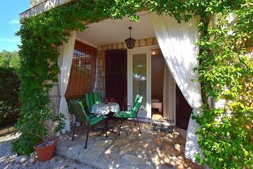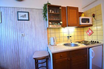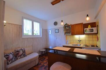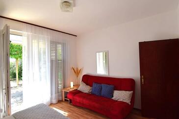 Studio bietet Platz für 4 Gäste. Die Betten sind in Schlafzimmern, die es 2 gibt, innerhalb einer Gesamtfläche von 38m2, angeordnet. Die Gäste haben eine eigene Terrasse zur Verfügung, auf der sie in warmen Sommernächten genießen können. Es ist erlaubt, Speisen auf dem Gemeinschafts-Grill vorzubereiten.