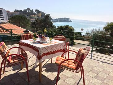 Ferienwohnung bietet Platz für 5 Gäste. Die Betten sind in Schlafzimmern, die es 2 gibt, und in Wohnzimmer, innerhalb einer Gesamtfläche von 67m2, angeordnet. Die Gäste haben eine eigene Terrasse zur Verfügung, auf der sie in warmen Sommernächten genießen können. Das Apartment bietet Meerblick. Es ist erlaubt, Speisen auf dem Gemeinschafts-Grill vorzubereiten. In der Unterkunftseinheit besteht die Möglichkeit des Mitbringens von Haustieren gegen Aufpreis.