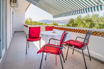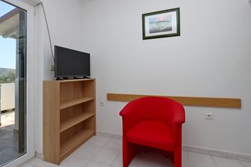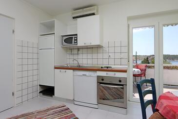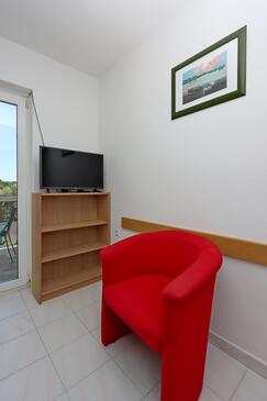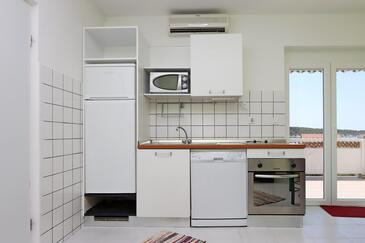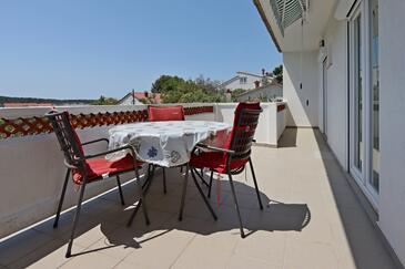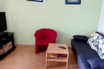 Ferienwohnung bietet Platz für 4 Gäste. Die Betten sind in Schlafzimmern, die es 2 gibt, innerhalb einer Gesamtfläche von 40m2, angeordnet. Die Gäste haben eine eigene Terrasse zur Verfügung, auf der sie in warmen Sommernächten genießen können. Das Apartment bietet Meerblick. Es ist erlaubt, Speisen auf dem Gemeinschafts-Grill vorzubereiten. In der Unterkunftseinheit besteht die Möglichkeit des Mitbringens von Haustieren gegen Aufpreis.