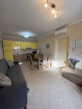Ferienwohnung bietet Platz für 3 Gäste. Die Betten sind in Schlafzimmern, die es 2 gibt, innerhalb einer Gesamtfläche von 42m2, angeordnet. Die Gäste haben eine eigene Terrasse zur Verfügung, auf der sie in warmen Sommernächten genießen können. Es ist erlaubt, Speisen auf dem Gemeinschafts-Grill vorzubereiten.