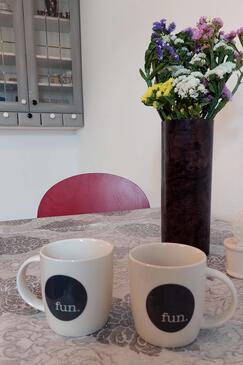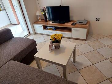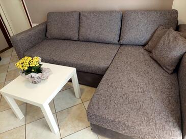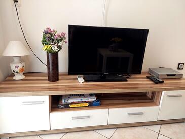 Ferienwohnung bietet Platz für 4 Gäste. Die Betten sind in Schlafzimmern, die es 2 gibt, innerhalb einer Gesamtfläche von 52m2, angeordnet. Die Gäste haben eine eigene Terrasse zur Verfügung, auf der sie in warmen Sommernächten genießen können. Das Apartment bietet Meerblick. Es ist erlaubt, Speisen auf dem Gemeinschafts-Grill vorzubereiten. In der gebuchten Unterkunftseinheit zahlt man am Ort ein Depositum ( der Preis ist an der Internetseite angeführt ).