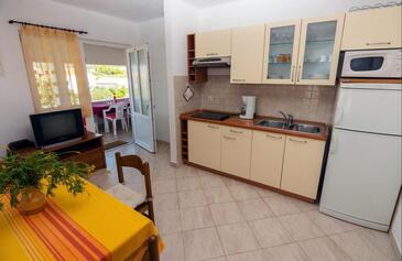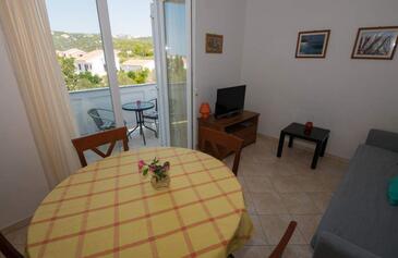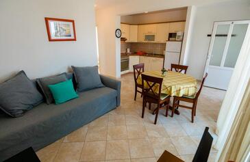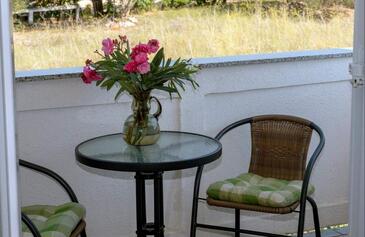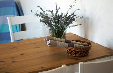 Ferienwohnung bietet Platz für 5 Gäste. Die Betten sind in Schlafzimmern, die es 2 gibt, innerhalb einer Gesamtfläche von 58m2, angeordnet. Die Gäste haben einen eigenen Balkon zur Verfügung, auf der sie in warmen Sommernächten genießen können. Das Apartment bietet Meerblick. Es ist erlaubt, Speisen auf dem Gemeinschafts-Grill vorzubereiten. In der Unterkunftseinheit besteht die Möglichkeit des Mitbringens von Haustieren gegen Aufpreis.