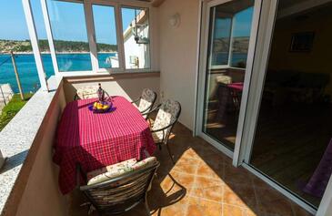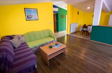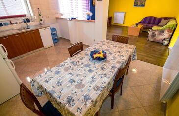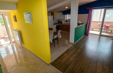 Ferienwohnung bietet Platz für 5 Gäste. Die Betten sind in Schlafzimmern, die es 2 gibt, und in Wohnzimmer, innerhalb einer Gesamtfläche von 62m2, angeordnet. Die Gäste haben eine eigene Terrasse zur Verfügung, auf der sie in warmen Sommernächten genießen können. Das Apartment bietet Meerblick. Es ist erlaubt, Speisen auf dem Gemeinschafts-Grill vorzubereiten.