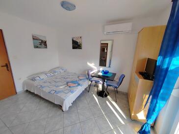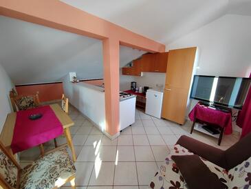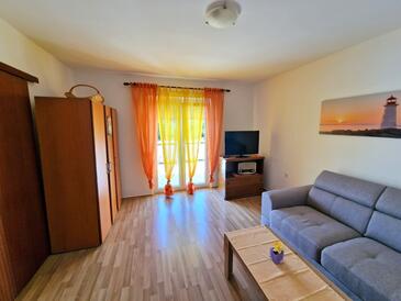 Ferienwohnung bietet Platz für 5 Gäste. Die Betten sind in Schlafzimmern, die es 2 gibt, und in Wohnzimmer, innerhalb einer Gesamtfläche von 70m2, angeordnet. Die Gäste haben eine eigene Terrasse zur Verfügung, auf der sie in warmen Sommernächten genießen können. Es ist erlaubt, Speisen auf dem Gemeinschafts-Grill vorzubereiten. In der Unterkunftseinheit besteht die Möglichkeit des Mitbringens von Haustieren gegen Aufpreis.