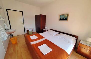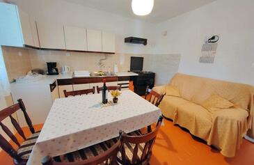 Ferienwohnung bietet Platz für 7 Gäste. Die Betten sind in Schlafzimmern, die es 3 gibt, innerhalb einer Gesamtfläche von 100m2, angeordnet. Die Gäste haben eine eigene Terrasse zur Verfügung, auf der sie in warmen Sommernächten genießen können. Das Apartment bietet Meerblick. Es ist erlaubt, Speisen auf dem Gemeinschafts-Grill vorzubereiten.