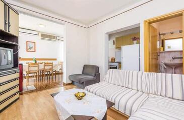 Ferienwohnung bietet Platz für 5 Gäste. Die Betten sind in Schlafzimmern, die es 2 gibt, innerhalb einer Gesamtfläche von 85m2, angeordnet. Die Gäste haben einen eigenen Balkon zur Verfügung, auf der sie in warmen Sommernächten genießen können. Das Apartment bietet Meerblick. Es ist erlaubt, Speisen auf dem Gemeinschafts-Grill vorzubereiten. In der Unterkunftseinheit besteht die Möglichkeit des Mitbringens von Haustieren gegen Aufpreis.