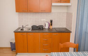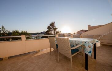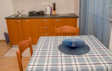 Ferienwohnung bietet Platz für 5 Gäste. Die Betten sind in Schlafzimmern, die es 2 gibt, und in Wohnzimmer, innerhalb einer Gesamtfläche von 51m2, angeordnet. Die Gäste haben eine eigene Terrasse zur Verfügung, auf der sie in warmen Sommernächten genießen können. Das Apartment bietet Meerblick. Es ist erlaubt, Speisen auf dem Gemeinschafts-Grill vorzubereiten. In der Unterkunftseinheit besteht die Möglichkeit des Mitbringens von Haustieren gegen Aufpreis.