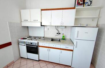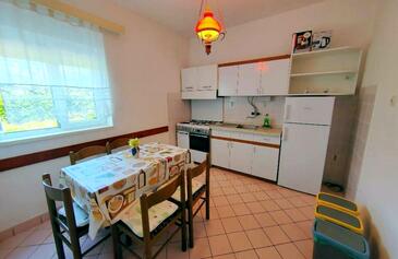 Ferienwohnung bietet Platz für 7 Gäste. Die Betten sind in Schlafzimmern, die es 3 gibt, innerhalb einer Gesamtfläche von 83m2, angeordnet. Die Gäste haben eine eigene Terrasse zur Verfügung, auf der sie in warmen Sommernächten genießen können. Es ist erlaubt, Speisen auf dem Gemeinschafts-Grill vorzubereiten.