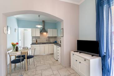 Ferienwohnung bietet Platz für 2 Gäste. Die Betten sind in Schlafzimmern, die es 1 gibt, innerhalb einer Gesamtfläche von 32m2, angeordnet. Die Gäste haben eine eigene Terrasse zur Verfügung, auf der sie in warmen Sommernächten genießen können. Das Apartment bietet Meerblick. Es ist erlaubt, Speisen auf dem Gemeinschafts-Grill vorzubereiten. In der Unterkunftseinheit besteht die Möglichkeit des Mitbringens von Haustieren gegen Aufpreis.