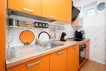 Ferienwohnung bietet Platz für 7 Gäste. Die Betten sind in Schlafzimmern, die es 2 gibt, und in Wohnzimmer, innerhalb einer Gesamtfläche von 53m2, angeordnet. Die Gäste haben eine eigene Terrasse zur Verfügung, auf der sie in warmen Sommernächten genießen können. Es ist erlaubt, Speisen auf dem Gemeinschafts-Grill vorzubereiten. In der Unterkunftseinheit besteht die Möglichkeit des Mitbringens von Haustieren gegen Aufpreis.