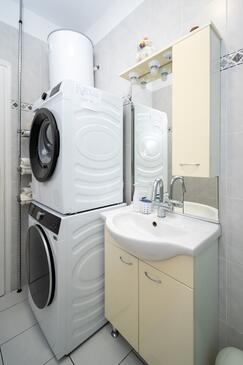 Ferienwohnung bietet Platz für 7 Gäste. Die Betten sind in Schlafzimmern, die es 2 gibt, und in Wohnzimmer, innerhalb einer Gesamtfläche von 53m2, angeordnet. Die Gäste haben eine eigene Terrasse zur Verfügung, auf der sie in warmen Sommernächten genießen können. Es ist erlaubt, Speisen auf dem Gemeinschafts-Grill vorzubereiten. In der Unterkunftseinheit besteht die Möglichkeit des Mitbringens von Haustieren gegen Aufpreis.