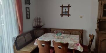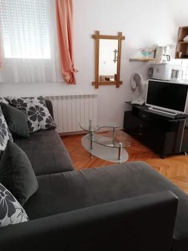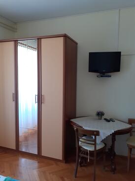 Ferienwohnung bietet Platz für 6 Gäste. Die Betten sind in Schlafzimmern, die es 2 gibt, innerhalb einer Gesamtfläche von 56m2, angeordnet. Die Gäste haben eine eigene Terrasse zur Verfügung, auf der sie in warmen Sommernächten genießen können. Das Apartment bietet Meerblick. In der Unterkunftseinheit besteht die Möglichkeit des Mitbringens von Haustieren gegen Aufpreis. In der gebuchten Unterkunftseinheit zahlt man am Ort ein Depositum ( der Preis ist an der Internetseite angeführt ).