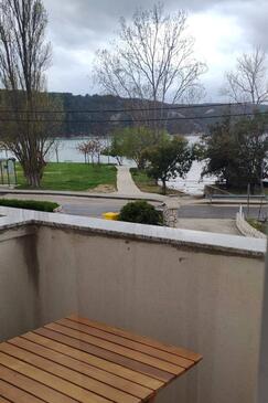 Ferienwohnung bietet Platz für 6 Gäste. Die Betten sind in Schlafzimmern, die es 2 gibt, innerhalb einer Gesamtfläche von 56m2, angeordnet. Die Gäste haben eine eigene Terrasse zur Verfügung, auf der sie in warmen Sommernächten genießen können. Das Apartment bietet Meerblick. In der Unterkunftseinheit besteht die Möglichkeit des Mitbringens von Haustieren gegen Aufpreis. In der gebuchten Unterkunftseinheit zahlt man am Ort ein Depositum ( der Preis ist an der Internetseite angeführt ).
