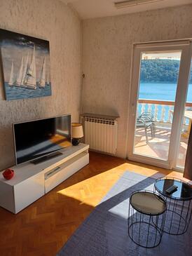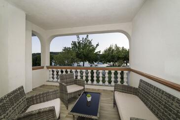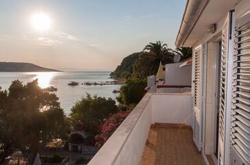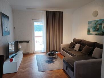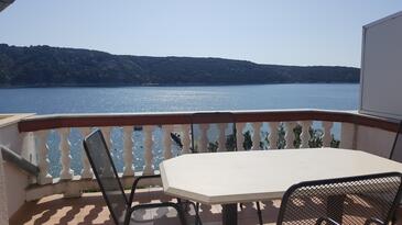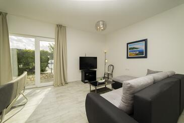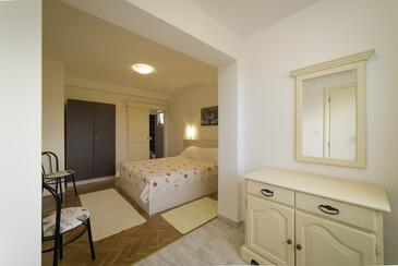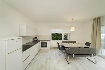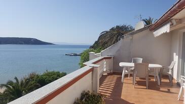 Ferienwohnung bietet Platz für 4 Gäste. Die Betten sind in Schlafzimmern, die es 2 gibt, innerhalb einer Gesamtfläche von 90m2, angeordnet. Die Gäste haben eine eigene Terrasse zur Verfügung, auf der sie in warmen Sommernächten genießen können. Das Apartment bietet Meerblick. Es ist erlaubt, Speisen auf dem Gemeinschafts-Grill vorzubereiten.
