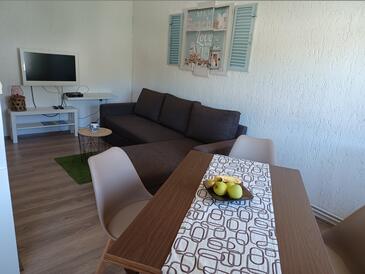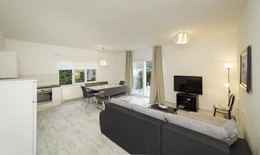 Ferienwohnung bietet Platz für 4 Gäste. Die Betten sind in Schlafzimmern, die es 2 gibt, innerhalb einer Gesamtfläche von 90m2, angeordnet. Die Gäste haben eine eigene Terrasse zur Verfügung, auf der sie in warmen Sommernächten genießen können. Das Apartment bietet Meerblick. Es ist erlaubt, Speisen auf dem Gemeinschafts-Grill vorzubereiten.