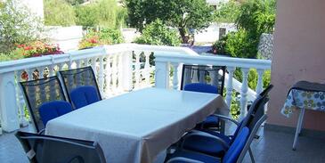 Ferienwohnung bietet Platz für 4 Gäste. Die Betten sind in Schlafzimmern, die es 2 gibt, innerhalb einer Gesamtfläche von 63m2, angeordnet. Die Gäste haben eine eigene Terrasse zur Verfügung, auf der sie in warmen Sommernächten genießen können. Es ist erlaubt, Speisen auf dem Gemeinschafts-Grill vorzubereiten.