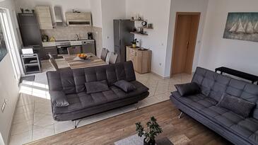 Ferienwohnung bietet Platz für 4 Gäste. Die Betten sind in Schlafzimmern, die es 2 gibt, innerhalb einer Gesamtfläche von 85m2, angeordnet. Die Gäste haben eine eigene Terrasse zur Verfügung, auf der sie in warmen Sommernächten genießen können. Das Apartment bietet Meerblick. Für vollen Genuss und Entspannung gibt es einen privaten Grill für Gäste dieser Unterkunft. In der gebuchten Unterkunftseinheit zahlt man am Ort ein Depositum ( der Preis ist an der Internetseite angeführt ).