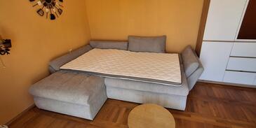 Ferienwohnung bietet Platz für 2 Gäste. Die Betten sind in Schlafzimmern, die es 1 gibt, innerhalb einer Gesamtfläche von 52m2, angeordnet. Die Gäste haben einen eigenen Balkon zur Verfügung, auf der sie in warmen Sommernächten genießen können. Das Apartment bietet Meerblick. Es ist erlaubt, Speisen auf dem Gemeinschafts-Grill vorzubereiten.