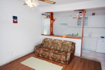 Ferienwohnung bietet Platz für 5 Gäste. Die Betten sind in Schlafzimmern, die es 1 gibt, und in Wohnzimmer, innerhalb einer Gesamtfläche von 45m2, angeordnet. Die Gäste haben einen eigenen Balkon zur Verfügung, auf der sie in warmen Sommernächten genießen können. Es ist erlaubt, Speisen auf dem Gemeinschafts-Grill vorzubereiten. In der Unterkunftseinheit besteht die Möglichkeit des Mitbringens von Haustieren gegen Aufpreis.