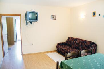 Ferienwohnung bietet Platz für 5 Gäste. Die Betten sind in Schlafzimmern, die es 1 gibt, und in Wohnzimmer, innerhalb einer Gesamtfläche von 45m2, angeordnet. Die Gäste haben einen eigenen Balkon zur Verfügung, auf der sie in warmen Sommernächten genießen können. Es ist erlaubt, Speisen auf dem Gemeinschafts-Grill vorzubereiten. In der Unterkunftseinheit besteht die Möglichkeit des Mitbringens von Haustieren gegen Aufpreis.