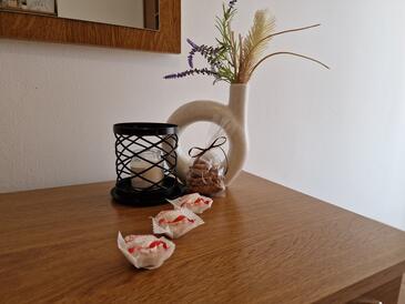 Studio bietet Platz für 3 Gäste. Die Betten sind in Schlafzimmern, die es 1 gibt, innerhalb einer Gesamtfläche von 22m2, angeordnet. Die Gäste haben eine eigene Terrasse zur Verfügung, auf der sie in warmen Sommernächten genießen können. Das Studio-Apartment bietet Meerblick. Es ist erlaubt, Speisen auf dem Gemeinschafts-Grill vorzubereiten. In der Unterkunftseinheit besteht die Möglichkeit des Mitbringens von Haustieren gegen Aufpreis.