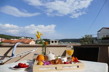 Studio bietet Platz für 3 Gäste. Die Betten sind in Schlafzimmern, die es 1 gibt, innerhalb einer Gesamtfläche von 22m2, angeordnet. Die Gäste haben eine eigene Terrasse zur Verfügung, auf der sie in warmen Sommernächten genießen können. Das Studio-Apartment bietet Meerblick. Es ist erlaubt, Speisen auf dem Gemeinschafts-Grill vorzubereiten. In der Unterkunftseinheit besteht die Möglichkeit des Mitbringens von Haustieren gegen Aufpreis.