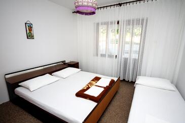 Ferienwohnung bietet Platz für 8 Gäste. Die Betten sind in Schlafzimmern, die es 4 gibt, innerhalb einer Gesamtfläche von 109m2, angeordnet. Die Gäste haben eine eigene Terrasse zur Verfügung, auf der sie in warmen Sommernächten genießen können. Das Apartment bietet Meerblick. Es ist erlaubt, Speisen auf dem Gemeinschafts-Grill vorzubereiten.