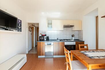 Ferienwohnung bietet Platz für 5 Gäste. Die Betten sind in Schlafzimmern, die es 2 gibt, innerhalb einer Gesamtfläche von 60m2, angeordnet. Die Gäste haben eine eigene Terrasse zur Verfügung, auf der sie in warmen Sommernächten genießen können. Für vollen Genuss und Entspannung gibt es einen privaten Grill für Gäste dieser Unterkunft. In der Unterkunftseinheit besteht die Möglichkeit des Mitbringens von Haustieren gegen Aufpreis.