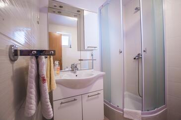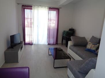 Ferienwohnung bietet Platz für 5 Gäste. Die Betten sind in Schlafzimmern, die es 2 gibt, innerhalb einer Gesamtfläche von 48m2, angeordnet. Die Gäste haben eine eigene Terrasse zur Verfügung, auf der sie in warmen Sommernächten genießen können. Das Apartment bietet Meerblick. Es ist erlaubt, Speisen auf dem Gemeinschafts-Grill vorzubereiten.