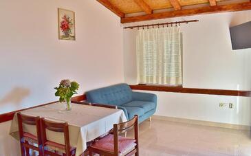 Ferienwohnung bietet Platz für 4 Gäste. Die Betten sind in Schlafzimmern, die es 2 gibt, innerhalb einer Gesamtfläche von 42m2, angeordnet. Die Gäste haben eine eigene Terrasse zur Verfügung, auf der sie in warmen Sommernächten genießen können. Das Apartment bietet Meerblick. Es ist erlaubt, Speisen auf dem Gemeinschafts-Grill vorzubereiten.