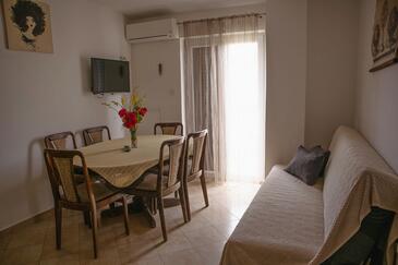 Ferienwohnung bietet Platz für 5 Gäste. Die Betten sind in Schlafzimmern, die es 2 gibt, innerhalb einer Gesamtfläche von 47m2, angeordnet. Die Gäste haben einen eigenen Balkon zur Verfügung, auf der sie in warmen Sommernächten genießen können. Das Apartment bietet Meerblick. Es ist erlaubt, Speisen auf dem Gemeinschafts-Grill vorzubereiten. Während ihres Aufenthalts können Gäste das gemeinsam zur Nutzung stehende Schwimmbad benutzen.