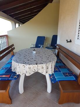 Ferienwohnung bietet Platz für 4 Gäste. Die Betten sind in Schlafzimmern, die es 2 gibt, innerhalb einer Gesamtfläche von 49m2, angeordnet. Die Gäste haben eine eigene Terrasse zur Verfügung, auf der sie in warmen Sommernächten genießen können. Das Apartment bietet Meerblick. Es ist erlaubt, Speisen auf dem Gemeinschafts-Grill vorzubereiten. In der Unterkunftseinheit besteht die Möglichkeit des Mitbringens von Haustieren gegen Aufpreis.