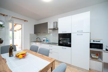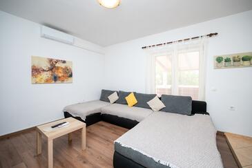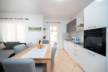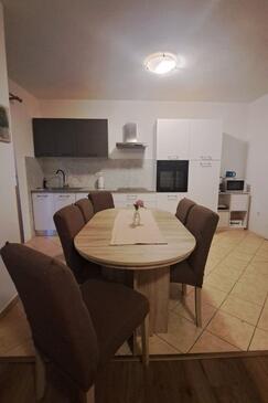 Ferienwohnung bietet Platz für 8 Gäste. Die Betten sind in Schlafzimmern, die es 3 gibt, und in Wohnzimmer, innerhalb einer Gesamtfläche von 100m2, angeordnet. Die Gäste haben eine eigene Terrasse zur Verfügung, auf der sie in warmen Sommernächten genießen können. Es ist erlaubt, Speisen auf dem Gemeinschafts-Grill vorzubereiten. In der Unterkunftseinheit besteht die Möglichkeit des Mitbringens von Haustieren gegen Aufpreis.