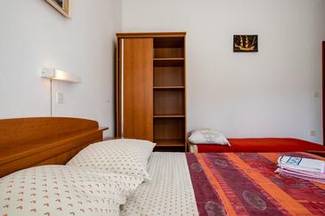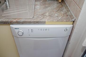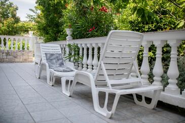 Ferienwohnung bietet Platz für 9 Gäste. Die Betten sind in Schlafzimmern, die es 3 gibt, innerhalb einer Gesamtfläche von 70m2, angeordnet. Die Gäste haben eine eigene Terrasse zur Verfügung, auf der sie in warmen Sommernächten genießen können. Es ist erlaubt, Speisen auf dem Gemeinschafts-Grill vorzubereiten. In der Unterkunftseinheit besteht die Möglichkeit des Mitbringens von Haustieren gegen Aufpreis.