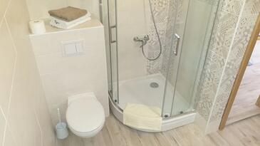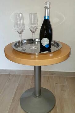 Ferienwohnung bietet Platz für 2 Gäste. Die Betten sind in Schlafzimmern, die es 1 gibt, innerhalb einer Gesamtfläche von 42m2, angeordnet. Die Gäste haben eine eigene Terrasse zur Verfügung, auf der sie in warmen Sommernächten genießen können. Es ist erlaubt, Speisen auf dem Gemeinschafts-Grill vorzubereiten.