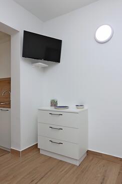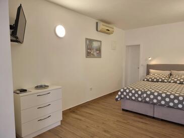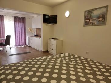 Ferienwohnung bietet Platz für 2 Gäste. Die Betten sind in Schlafzimmern, die es 1 gibt, innerhalb einer Gesamtfläche von 42m2, angeordnet. Die Gäste haben eine eigene Terrasse zur Verfügung, auf der sie in warmen Sommernächten genießen können. Es ist erlaubt, Speisen auf dem Gemeinschafts-Grill vorzubereiten.