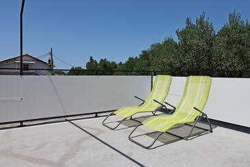 Ferienwohnung bietet Platz für 8 Gäste. Die Betten sind in Schlafzimmern, die es 3 gibt, und in Wohnzimmer, innerhalb einer Gesamtfläche von 81m2, angeordnet. Die Gäste haben eine eigene Terrasse zur Verfügung, auf der sie in warmen Sommernächten genießen können. Das Apartment bietet Meerblick. Es ist erlaubt, Speisen auf dem Gemeinschafts-Grill vorzubereiten. In der Unterkunftseinheit besteht die Möglichkeit des Mitbringens von Haustieren gegen Aufpreis.