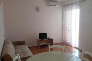 Ferienwohnung bietet Platz für 4 Gäste. Die Betten sind in Schlafzimmern, die es 2 gibt, innerhalb einer Gesamtfläche von 31m2, angeordnet. Die Gäste haben einen eigenen Balkon zur Verfügung, auf der sie in warmen Sommernächten genießen können. Das Apartment bietet Meerblick. Es ist erlaubt, Speisen auf dem Gemeinschafts-Grill vorzubereiten.