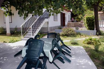 Ferienwohnung bietet Platz für 6 Gäste. Die Betten sind in Schlafzimmern, die es 3 gibt, innerhalb einer Gesamtfläche von 77m2, angeordnet. Die Gäste haben eine eigene Terrasse zur Verfügung, auf der sie in warmen Sommernächten genießen können. Das Apartment bietet Meerblick. Es ist erlaubt, Speisen auf dem Gemeinschafts-Grill vorzubereiten.