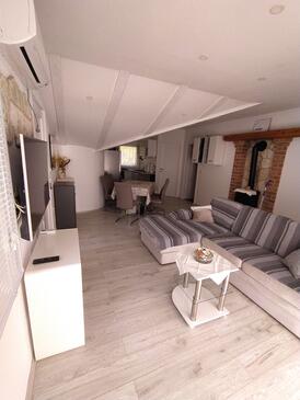 Ferienwohnung bietet Platz für 6 Gäste. Die Betten sind in Schlafzimmern, die es 3 gibt, innerhalb einer Gesamtfläche von 72m2, angeordnet. Die Gäste haben eine eigene Terrasse zur Verfügung, auf der sie in warmen Sommernächten genießen können. Das Apartment bietet Meerblick. Es ist erlaubt, Speisen auf dem Gemeinschafts-Grill vorzubereiten.