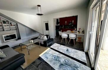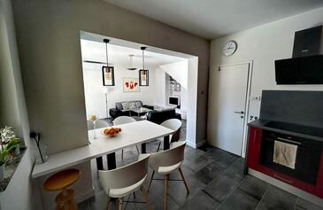 Haus bietet Platz für 6 Gäste. Die Betten sind in Schlafzimmern, die es 3 gibt, innerhalb einer Gesamtfläche von 130m2, angeordnet. Die Gäste haben eine eigene Terrasse zur Verfügung, auf der sie in warmen Sommernächten genießen können. Für vollen Genuss und Entspannung gibt es einen privaten Grill für Gäste dieser Unterkunft.