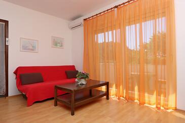 Ferienwohnung bietet Platz für 9 Gäste. Die Betten sind in Schlafzimmern, die es 3 gibt, innerhalb einer Gesamtfläche von 94m2, angeordnet. Die Gäste haben eine eigene Terrasse zur Verfügung, auf der sie in warmen Sommernächten genießen können. Das Apartment bietet Meerblick. Es ist erlaubt, Speisen auf dem Gemeinschafts-Grill vorzubereiten. In der Unterkunftseinheit besteht die Möglichkeit des Mitbringens von Haustieren gegen Aufpreis.