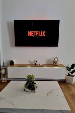 Ferienwohnung bietet Platz für 9 Gäste. Die Betten sind in Schlafzimmern, die es 3 gibt, innerhalb einer Gesamtfläche von 89m2, angeordnet. Die Gäste haben eine eigene Terrasse zur Verfügung, auf der sie in warmen Sommernächten genießen können. Das Apartment bietet Meerblick. Es ist erlaubt, Speisen auf dem Gemeinschafts-Grill vorzubereiten. In der Unterkunftseinheit besteht die Möglichkeit des Mitbringens von Haustieren gegen Aufpreis.