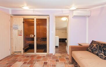 Haus bietet Platz für 8 Gäste. Die Betten sind in Schlafzimmern, die es 3 gibt, und in Wohnzimmer, innerhalb einer Gesamtfläche von 149m2, angeordnet. Die Gäste haben eine eigene Terrasse zur Verfügung, auf der sie in warmen Sommernächten genießen können. Das Haus bietet Meerblick. Es ist erlaubt, Speisen auf dem Gemeinschafts-Grill vorzubereiten. Während ihres Aufenthalts können sich Gäste im privaten Schwimmbad entspannen. In der Unterkunftseinheit besteht die Möglichkeit des Mitbringens von Haustieren, und die Dienstleistung ist im Preis der Unterkunft enthalten.