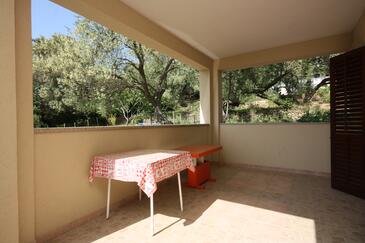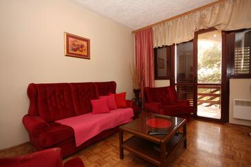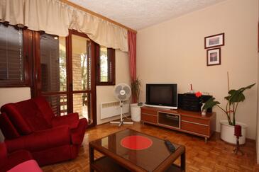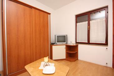 Ferienwohnung bietet Platz für 2 Gäste. Die Betten sind in Schlafzimmern, die es 1 gibt, innerhalb einer Gesamtfläche von 33m2, angeordnet. Die Gäste haben eine eigene Terrasse zur Verfügung, auf der sie in warmen Sommernächten genießen können. Das Apartment bietet Meerblick. Es ist erlaubt, Speisen auf dem Gemeinschafts-Grill vorzubereiten.