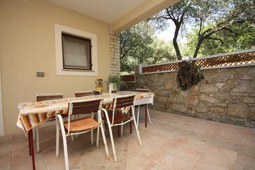 Ferienwohnung bietet Platz für 2 Gäste. Die Betten sind in Schlafzimmern, die es 1 gibt, innerhalb einer Gesamtfläche von 33m2, angeordnet. Die Gäste haben eine eigene Terrasse zur Verfügung, auf der sie in warmen Sommernächten genießen können. Das Apartment bietet Meerblick. Es ist erlaubt, Speisen auf dem Gemeinschafts-Grill vorzubereiten.