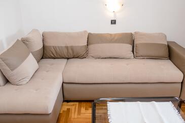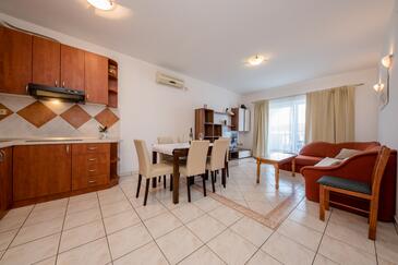 Ferienwohnung bietet Platz für 4 Gäste. Die Betten sind in Schlafzimmern, die es 2 gibt, innerhalb einer Gesamtfläche von 60m2, angeordnet. Die Gäste haben eine eigene Terrasse zur Verfügung, auf der sie in warmen Sommernächten genießen können. Das Apartment bietet Meerblick. Es ist erlaubt, Speisen auf dem Gemeinschafts-Grill vorzubereiten. In der Unterkunftseinheit besteht die Möglichkeit des Mitbringens von Haustieren gegen Aufpreis.