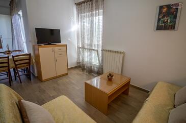 Ferienwohnung bietet Platz für 4 Gäste. Die Betten sind in Schlafzimmern, die es 1 gibt, und in Wohnzimmer, innerhalb einer Gesamtfläche von 40m2, angeordnet. Die Gäste haben einen eigenen Balkon zur Verfügung, auf der sie in warmen Sommernächten genießen können. Das Apartment bietet Meerblick. Es ist erlaubt, Speisen auf dem Gemeinschafts-Grill vorzubereiten. In der Unterkunftseinheit besteht die Möglichkeit des Mitbringens von Haustieren gegen Aufpreis.