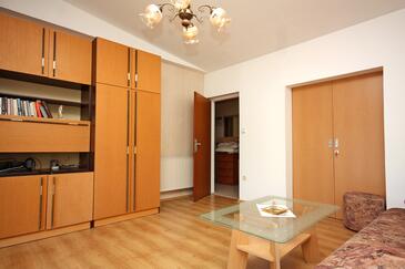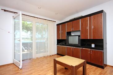 Ferienwohnung bietet Platz für 4 Gäste. Die Betten sind in Schlafzimmern, die es 1 gibt, und in Wohnzimmer, innerhalb einer Gesamtfläche von 52m2, angeordnet. Die Gäste haben eine eigene Terrasse zur Verfügung, auf der sie in warmen Sommernächten genießen können. Das Apartment bietet Meerblick. Es ist erlaubt, Speisen auf dem Gemeinschafts-Grill vorzubereiten. In der Unterkunftseinheit besteht die Möglichkeit des Mitbringens von Haustieren gegen Aufpreis.